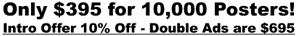Think of this... just to print 10,000 business cards alone could cost $400. But, we Design your ad, Print 10,000 and display them on walls, windows, bulletin boards, doors and refrigerators all over for up to 12 months!