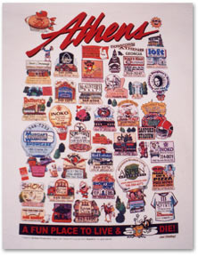 These are photographs of actual printed "Athens T-shirts." Click each image to see larger view.